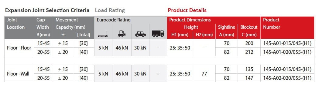 | Gap width(s) | 15-55 mm |