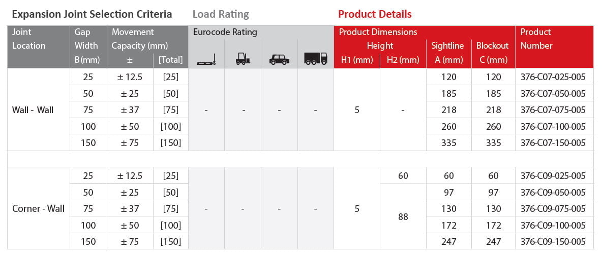 | Gap width(s) | 25, 50, 75, 100, 150 mm |
