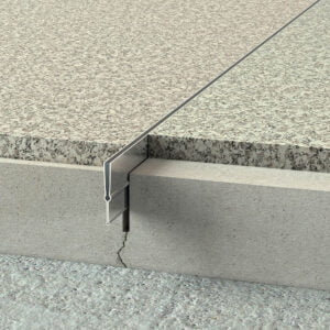 In high traffic environments such as stadiums it is strongly recommended that control joints with metal side plates are installed in floors. The reason is that these metal plates help protect and support the finishes from the worst rigours of impact and abrasion which can often result in cracking and spalling of the edges of paving.
